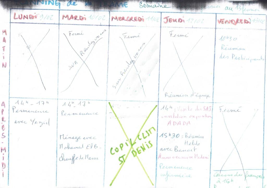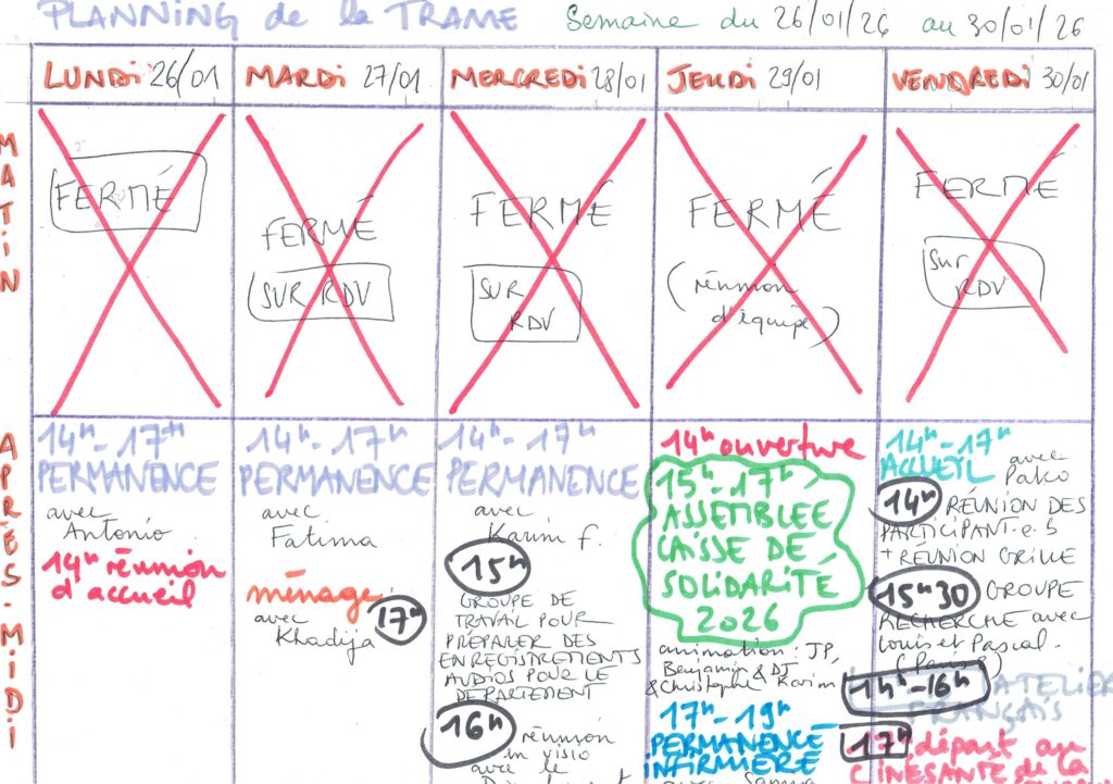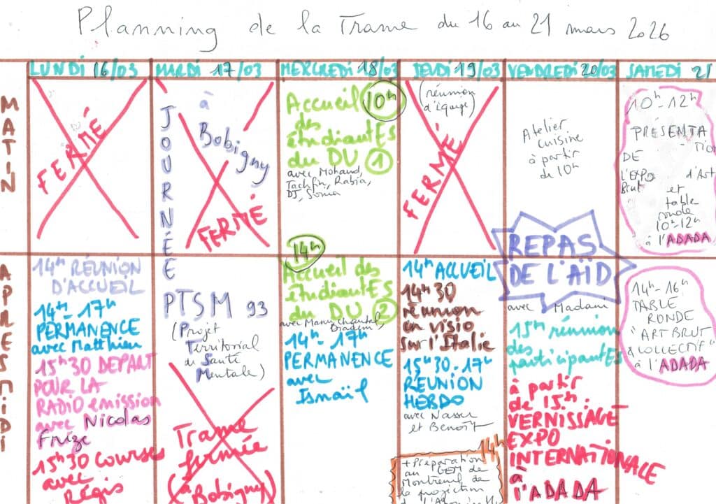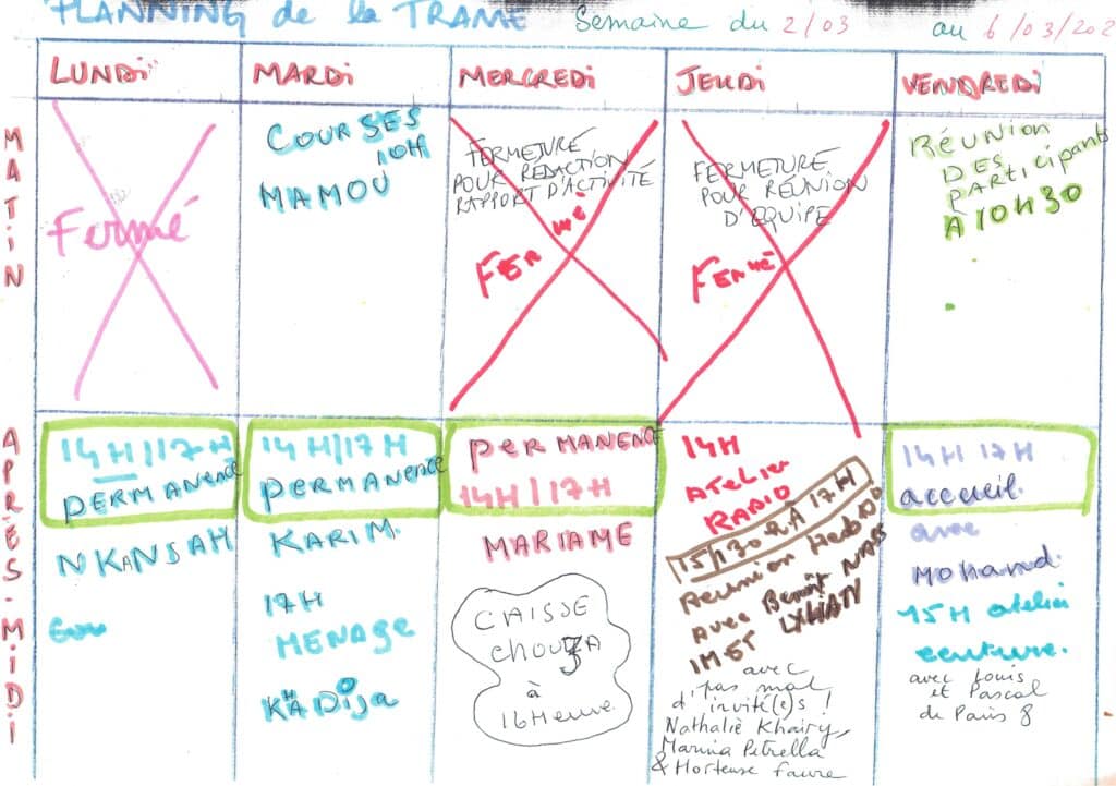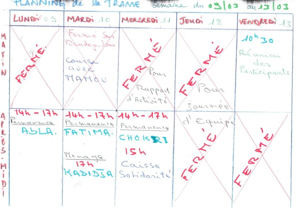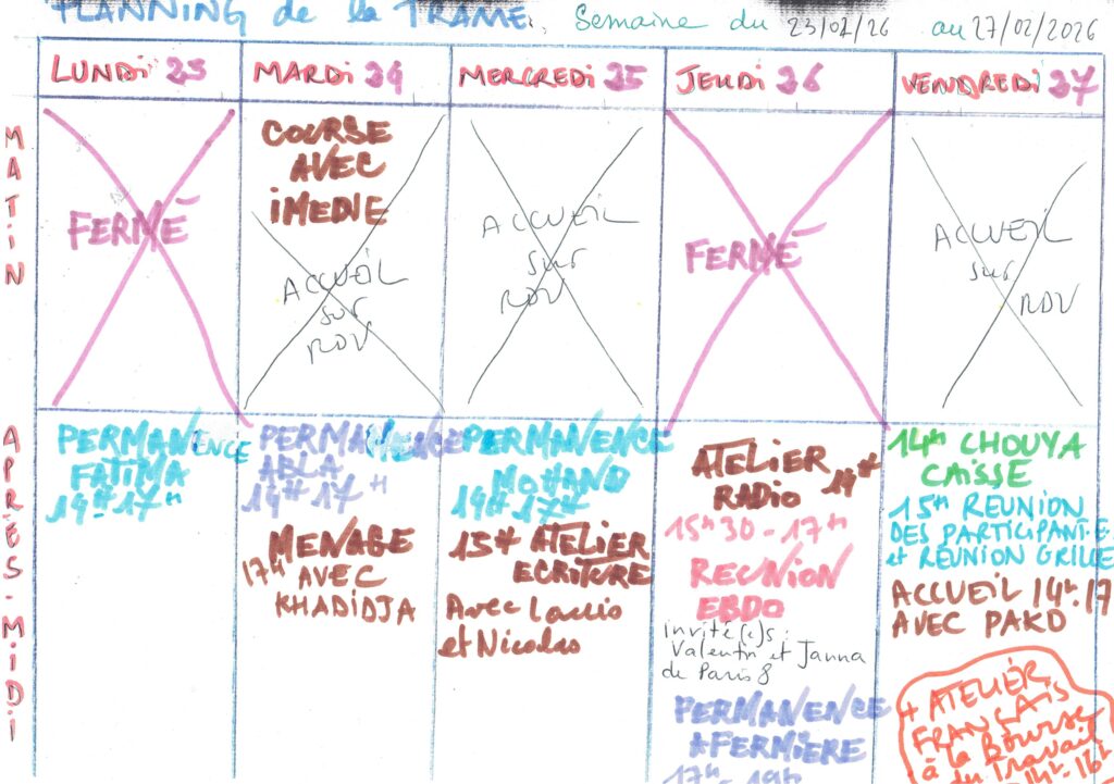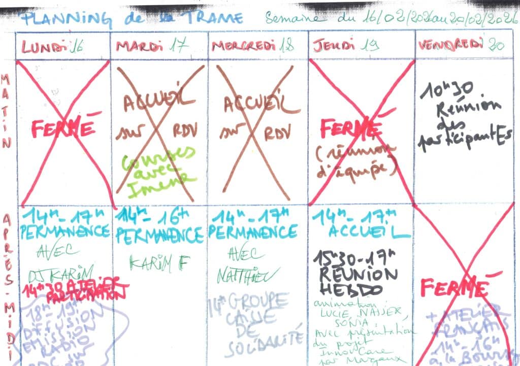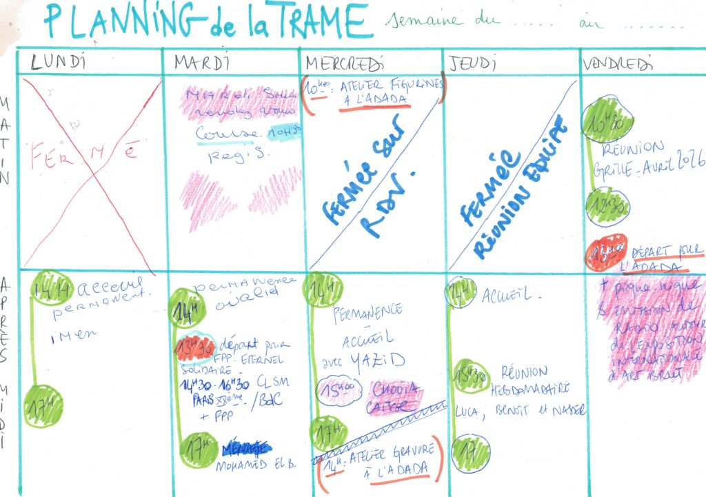 Planning hebdomadaire de la Trame
