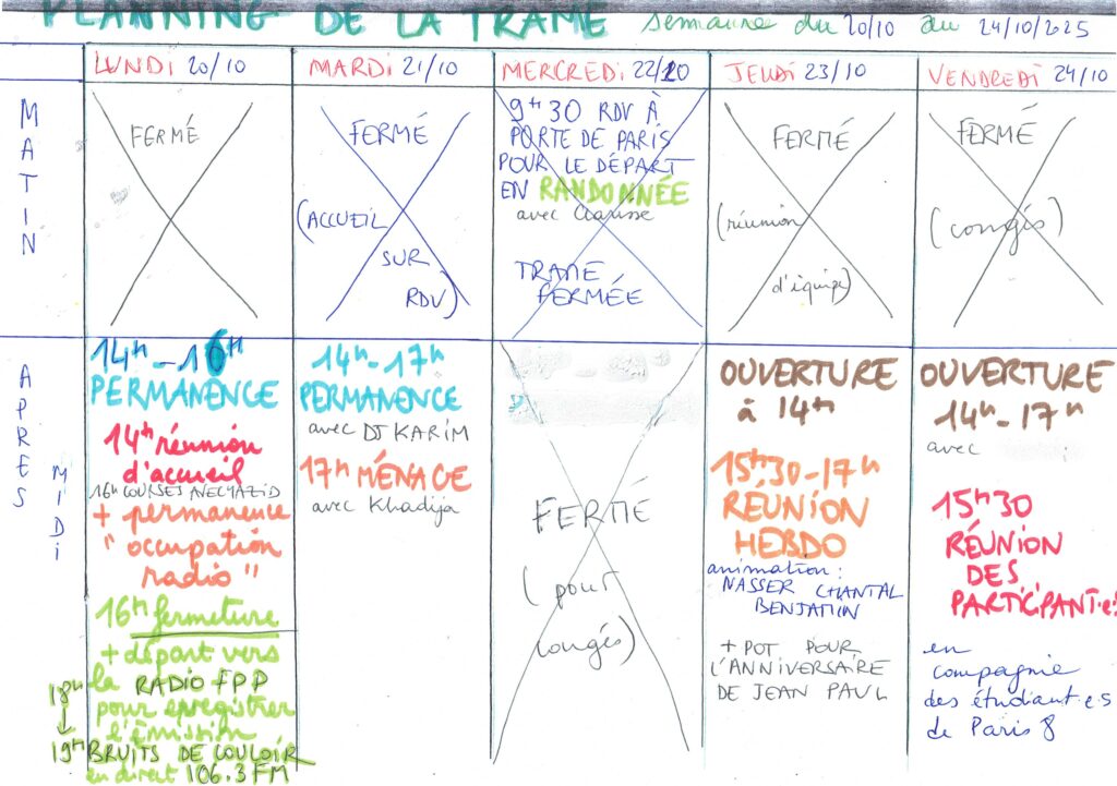 La Trame est ouverte et accessible du lundi au vendredi de 14h à 17h et sur rendez-vous le matin du mardi au vendredi. Nous sommes aussi joignables au téléphone du lundi au vendredi de 10h à 17h au 09 72 93 63 41.